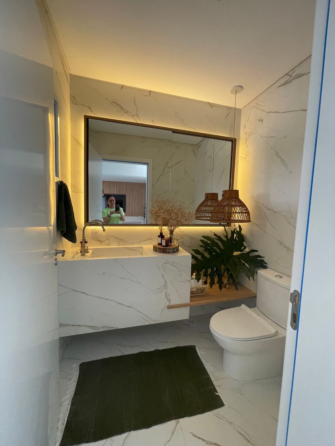 Banheiro com painel ripado e iluminação de led. Um luxo. 🥰🥰 Faça seu orçamento hoje mesmo, entre em contato pelo link da bio. #móveissobmedida #grandeflorianopolis